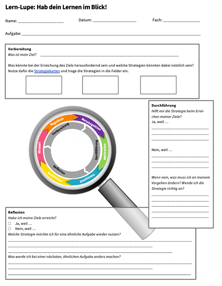 Die „Lern-Lupe“ ist ein praktisches Instrument, um gemeinsam mit Schüler:innen ihr Lernen unter die Lupe zu nehmen und Strategien gezielt einzusetzen.